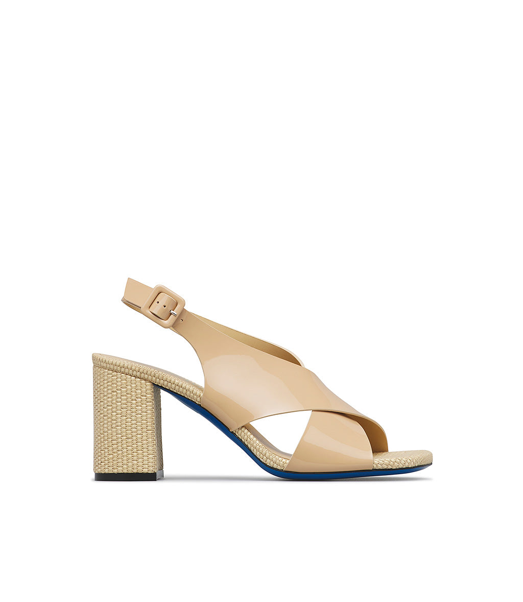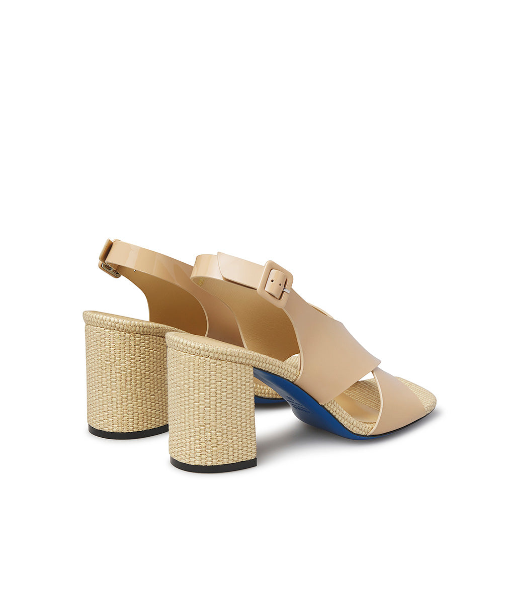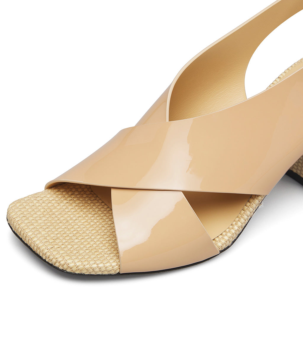 Sandalo in vernice e rafia beige naturale
