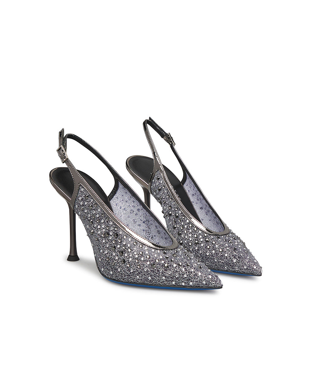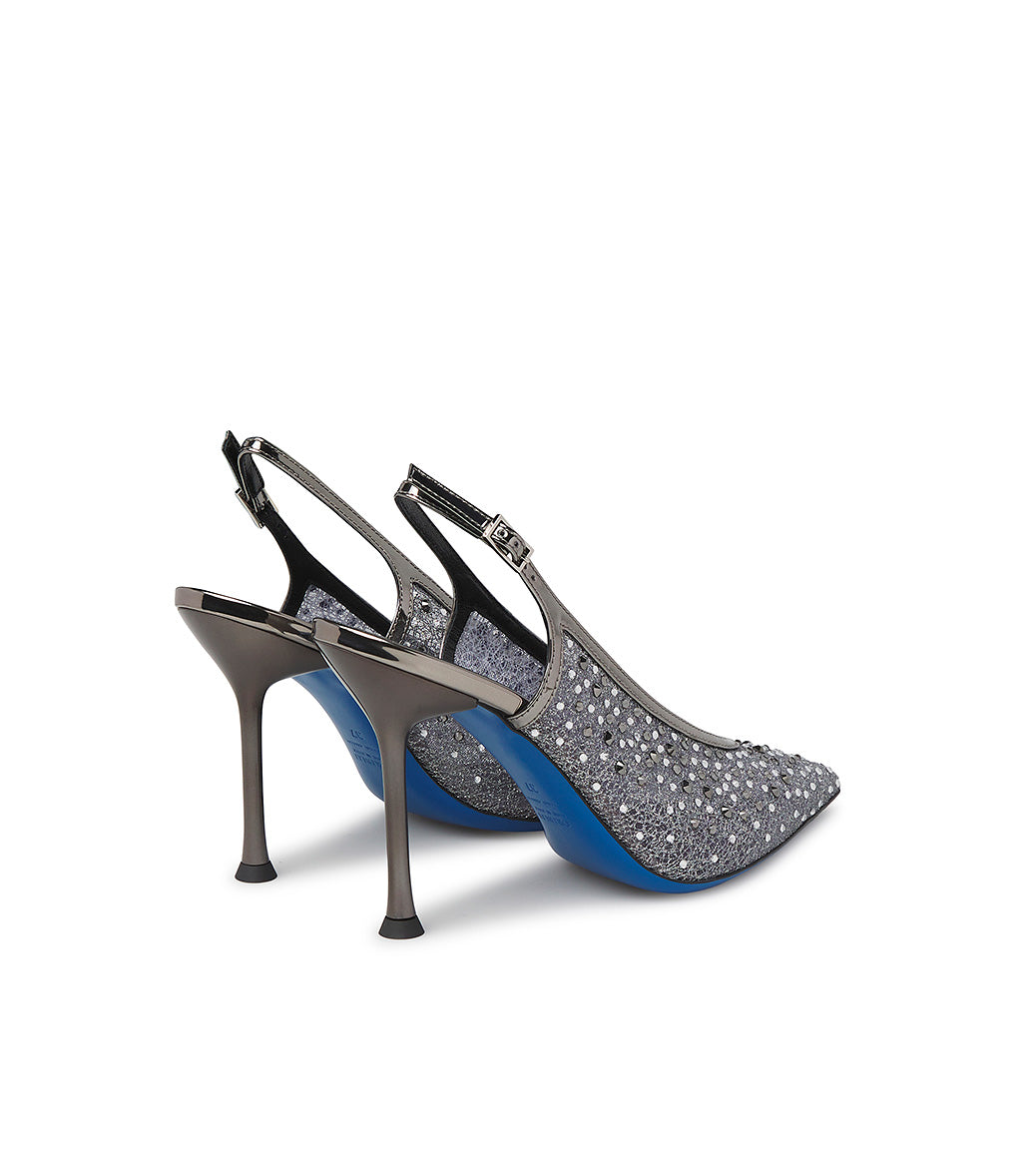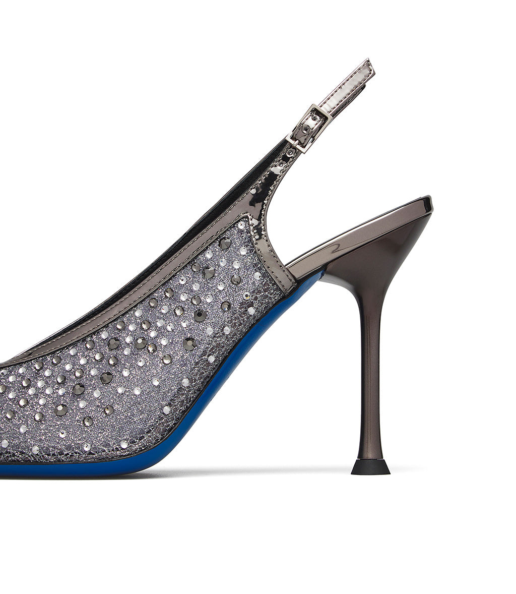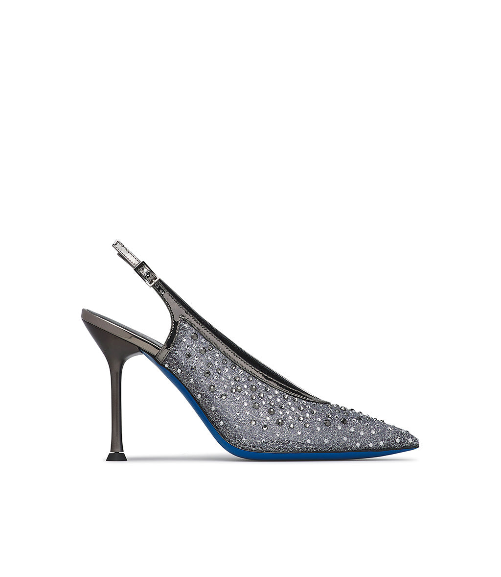 Slingback gioiello in tricot e vernice antracite