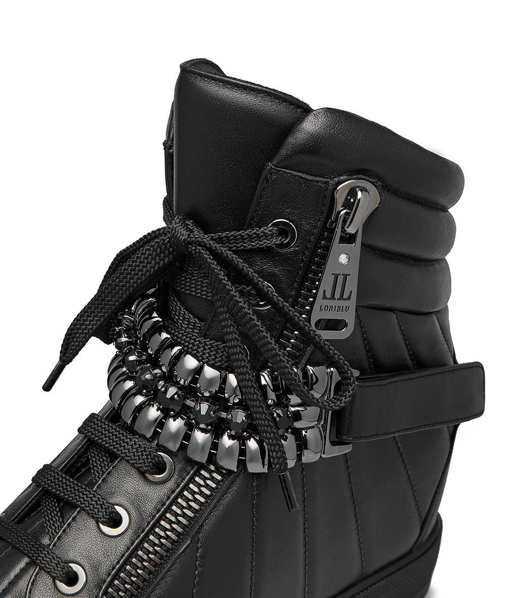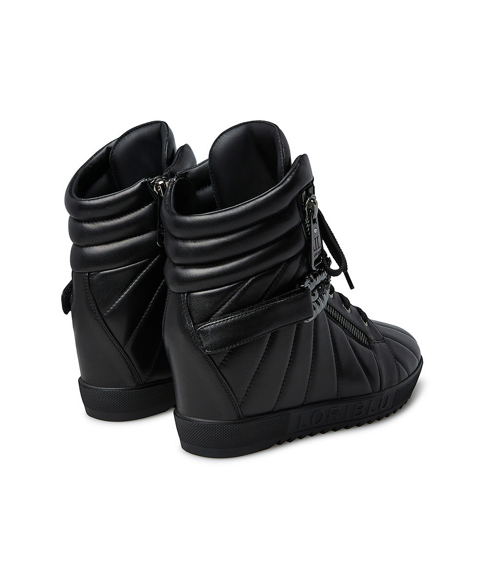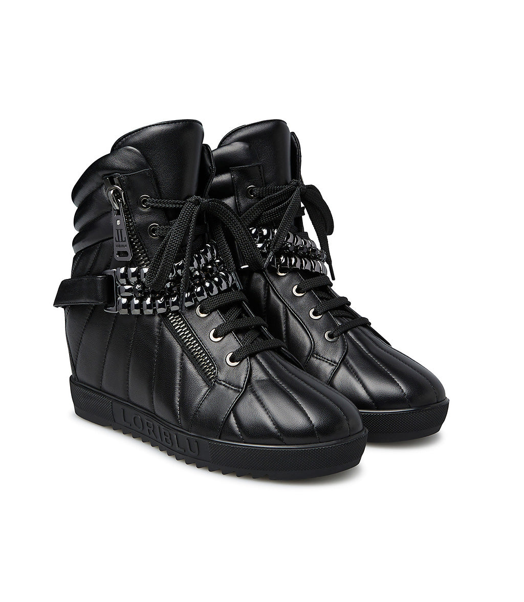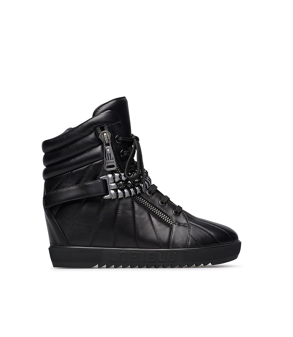 Sneaker in vitello nero con zeppa interna