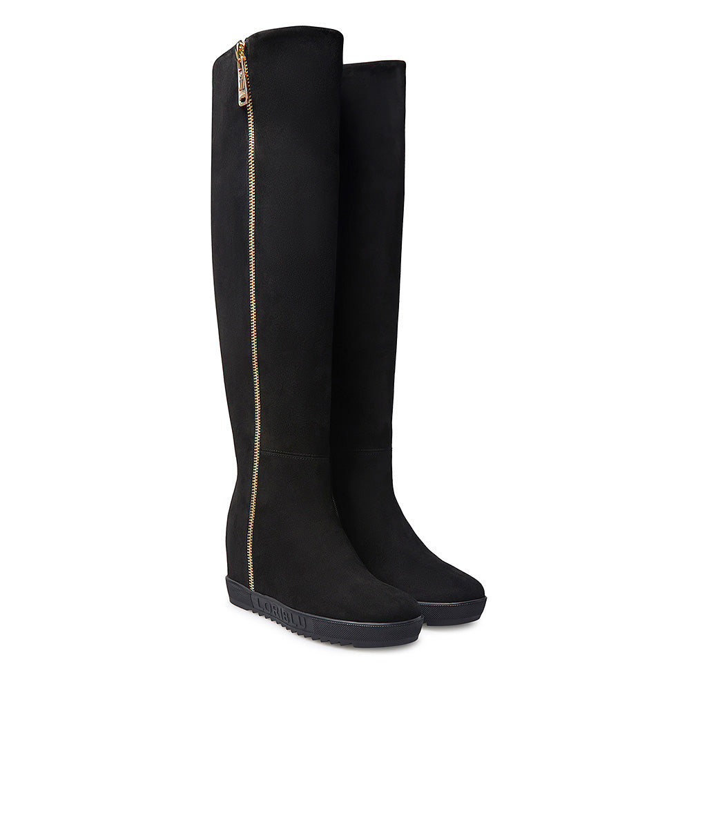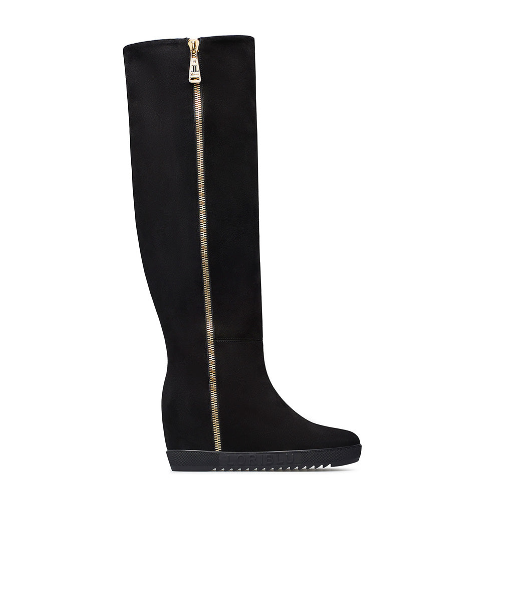 Stivale in camoscio nero con zeppa interna