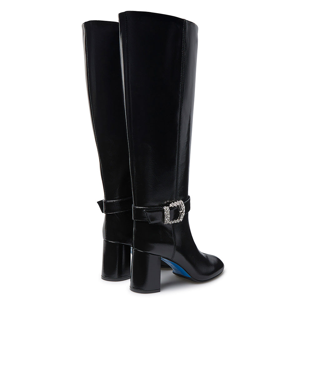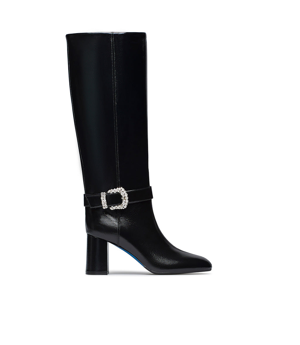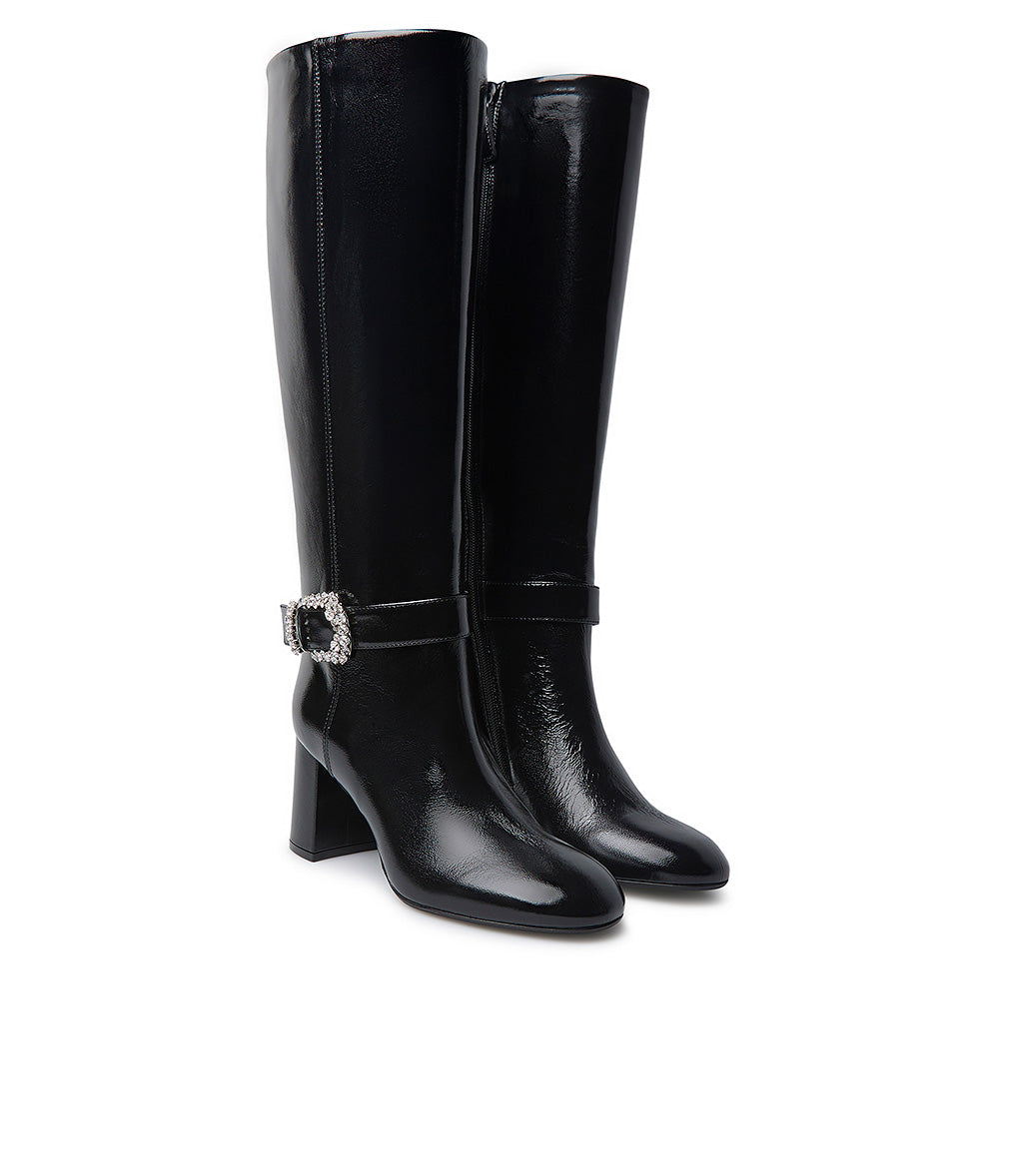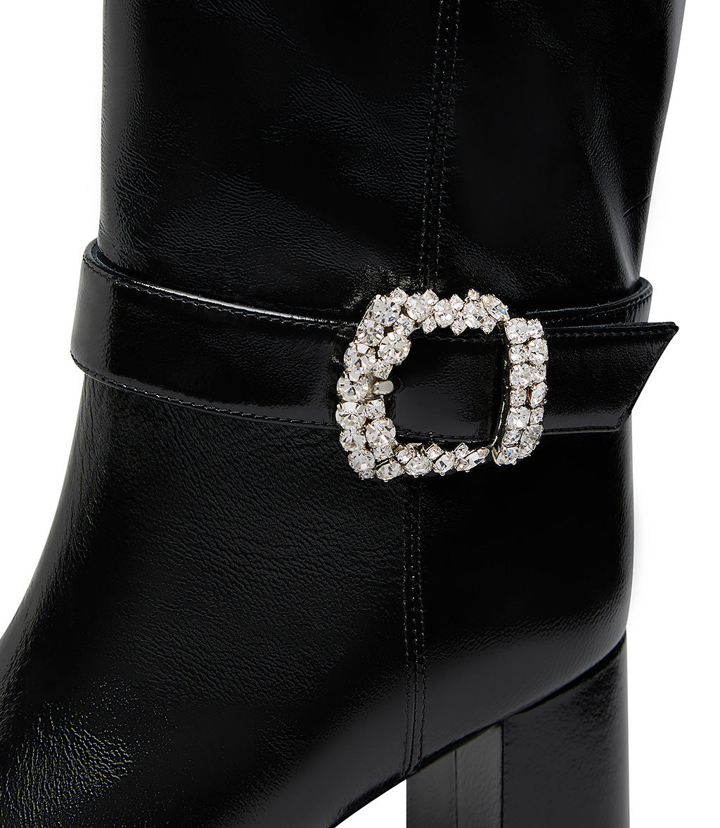 Stivale in pelle lucida nero con fibbia gioiello